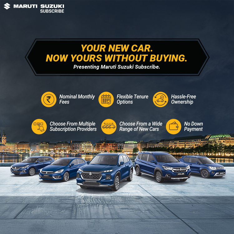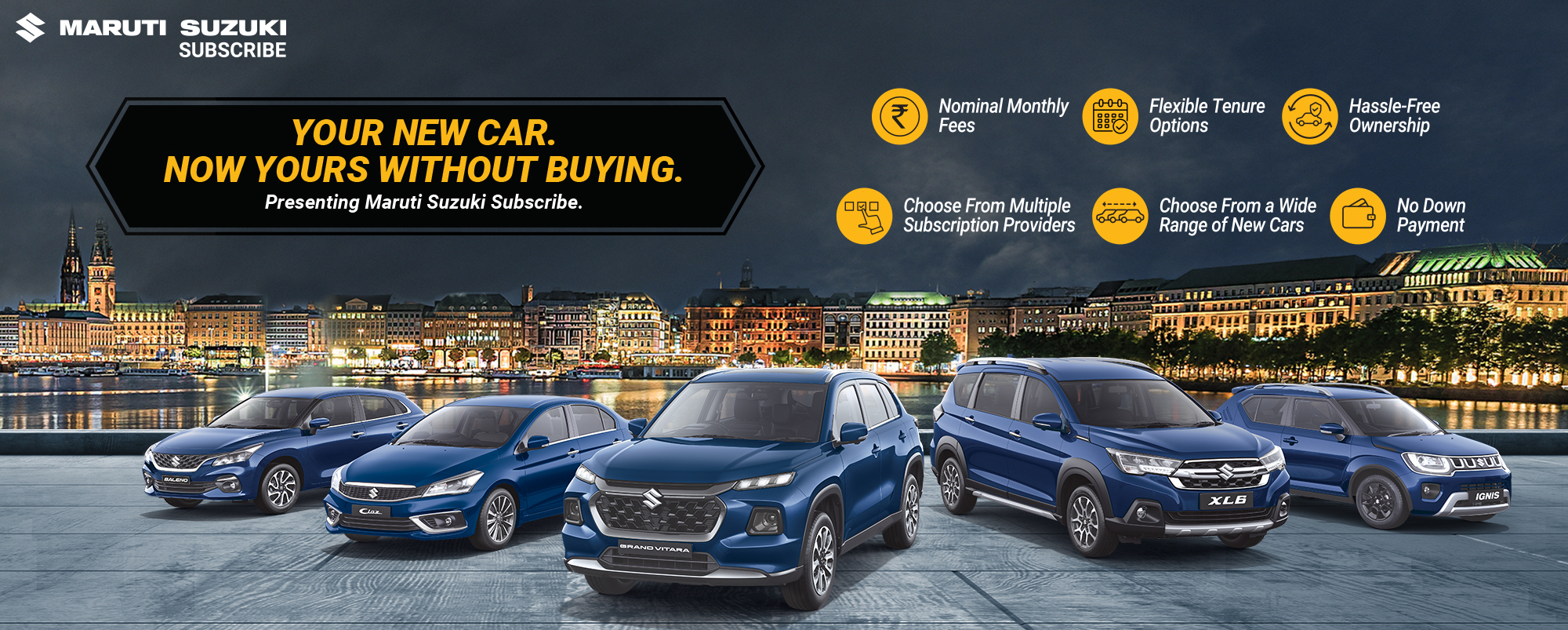 Maruti Suzuki Subscribe enables all customers to enjoy driving their preferred Maruti Suzuki cars without having to deal with all the financial responsibilities that come with owning a car.All you need to do is opt for a monthly subscription plan at a fixed monthly fee, which includes the routine maintenance and insurance costs, and choose a flexible tenure. At Shreyash Automotives in, Guru Harkishan Marg, New Delhi, all Hatchback, Sedan, SUV, the MUV models line-up includes Baleno, Invicto, EVitara, Jimny, Ciaz, Ignis, Fronx, Grand Vitara, XL6. Here, you will enjoy Maruti Suzuki Subscribe benefits such as: